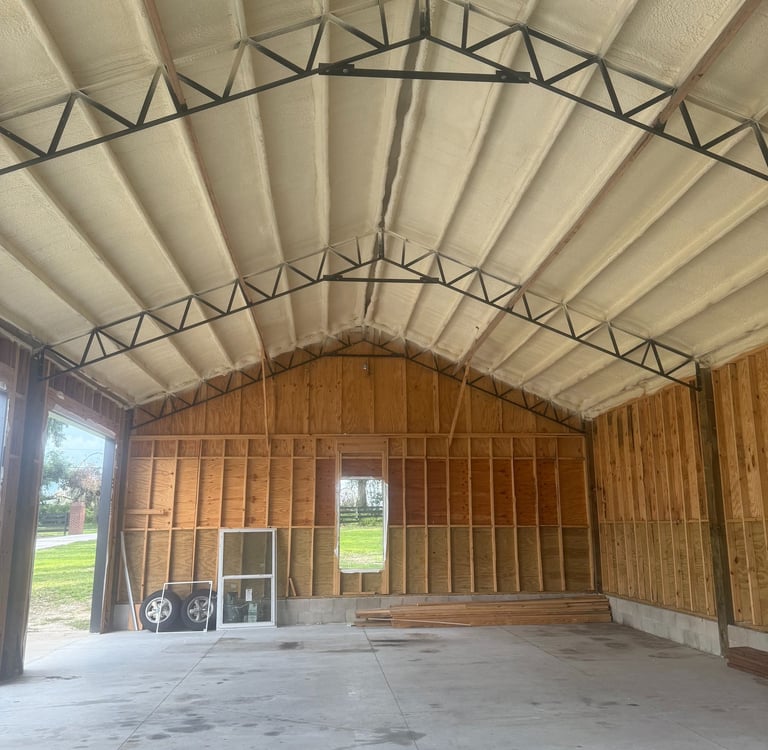 Pole barns and agricultural buildings in North Florida lose energy fast without proper insulation. Our closed-cell spray foam is the ideal solution for pole barns because it creates a rigid air and moisture barrier that holds up in heat, humidity, and open-air structures.